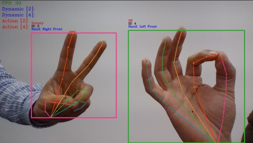 특히 색상(RGB), 입체, 근적외선 카메라 등 다양한 종류의 카메라를 통해 제스처 인식이 가능하며, 프로그래머블 반도체(FPGA), 마이크로프로세서(MPU), 마이크로컨트롤러(MCU) 등 하드웨어(HW)) 지원을 통해 여러 산업 분야에서도 활용 가능하다.