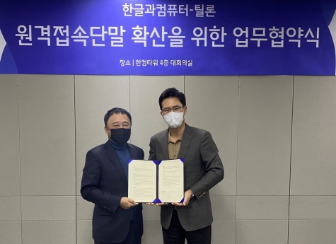 [아이뉴스24 최은정 기자] 한글과컴퓨터는 원격접속 단말 사업을 위해 클라우드 기반 인프라 소프트웨어 기업 틸론과 업무협약(MOU)을 체결했다고 17일 발표했다.